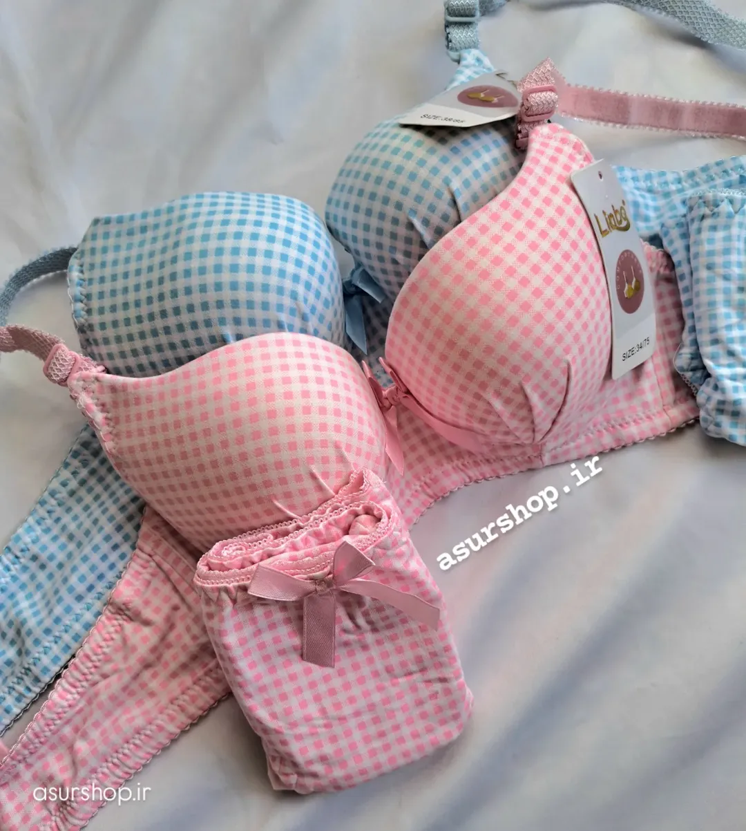 دو تا رنگ صورتی و آبی وایب هر دو آروم و ملیح زیبا انتخاب بینشون سخته ست های چهارخونه فانتزی شارژ شده که جنس پنبه ای لطیفی دارن ایستایی خیلی خوبی بهت میدن کاپ C داره فنردار و اسفنجی هست صورتی در سایزبندی ۷۵/۸۰ و آبی در سایزبندی ۷۵/۸۰/۸۵ سایزبندی این کار اروپایی هست و بهتره از سایز نرمالتون یه شماره بزرگتر انتخاب کنید کاپ کار کوچیک و دخترونست تقدیمتون میشه ثبت از طریق و سایت آسور شاپ انجام میشه @asurshop.ir http://asurshop.ir ارسال پستی به صورتی یا آبی ؟